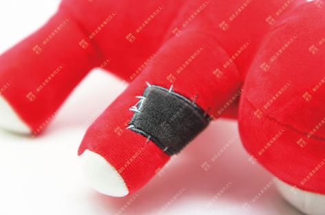親親偶偶很榮幸承接到劇中紅色小熊絨毛娃娃的周邊製作,除了還原造型與比例,為了增加補丁縫補後的立體感,特 別以刺繡工藝製作,將娃娃的細節完美呈現。
